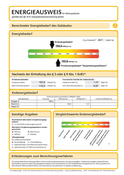 Verbrauchsorientierter Energieausweis für Wohngebäude