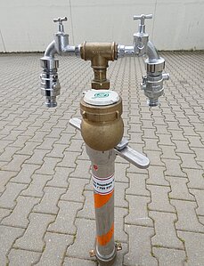 Gern stellen wir Ihnen für die Bauphase ein Standrohr samt Zähler mit Zubehörteilen (Hydrantenschlüssel, Durchlaufventil, Auslaufventil, C-Druck Kupllung) zur Verfügung. Für das Standrohr ist eine Kaution zu hinterlegen. Weiterhin werden eine Standrohrmiete sowie der Wasserverbrauch berechnet.